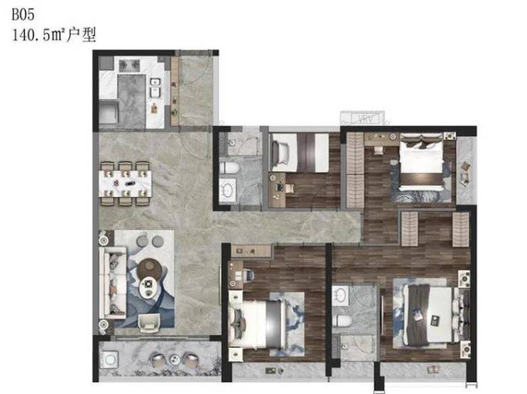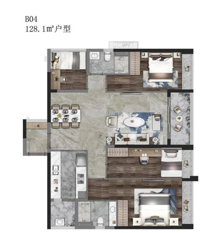 此外该户型为独立三房格局,可以有效减少三代同堂因作息不一致导致的不便:作息相近的主人房和小孩房相邻而立,方便照料和亲子交流,早睡早起的老人另侧居住,互不打扰。