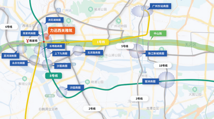 力迅西关雅筑位于陈家祠核心位置,门口的中山路,串联了越秀、荔湾发展,是广州难得一条历史文化荟萃的主干道,同时也是广州最早的财富通道。