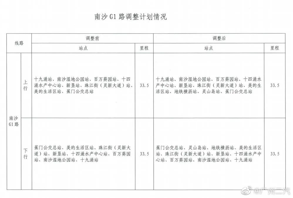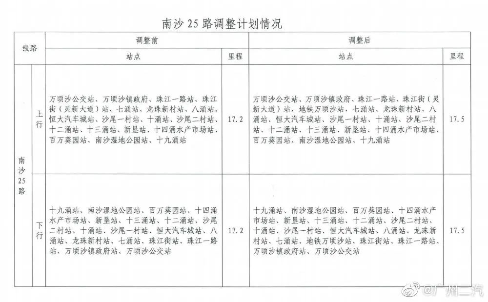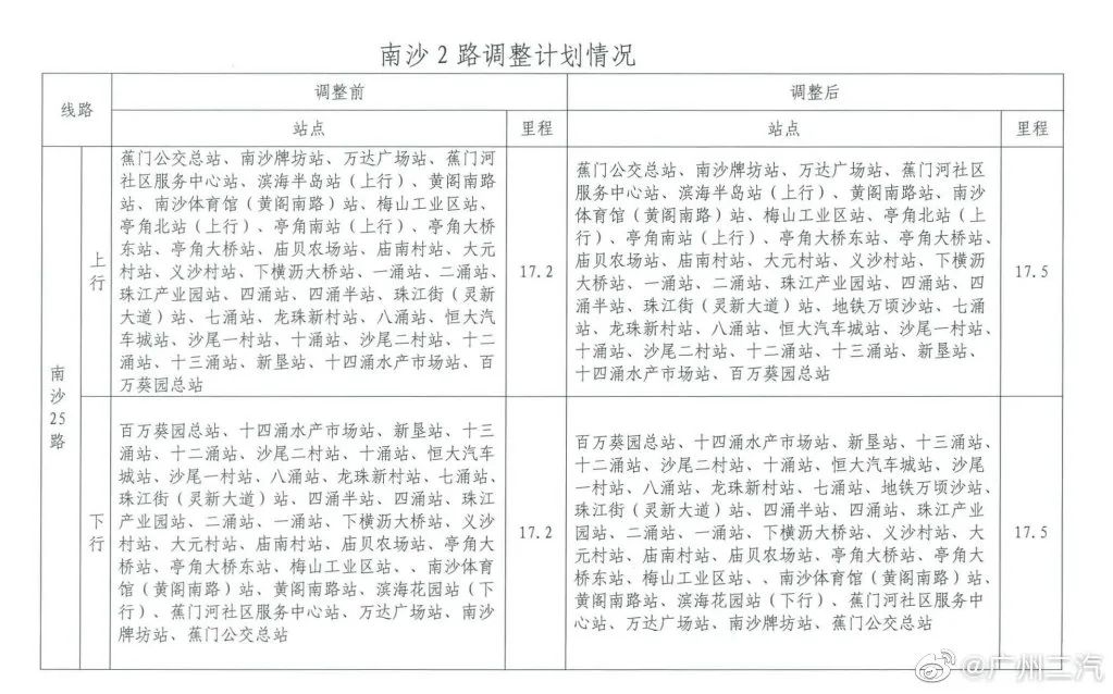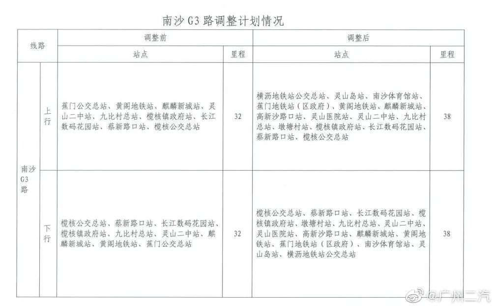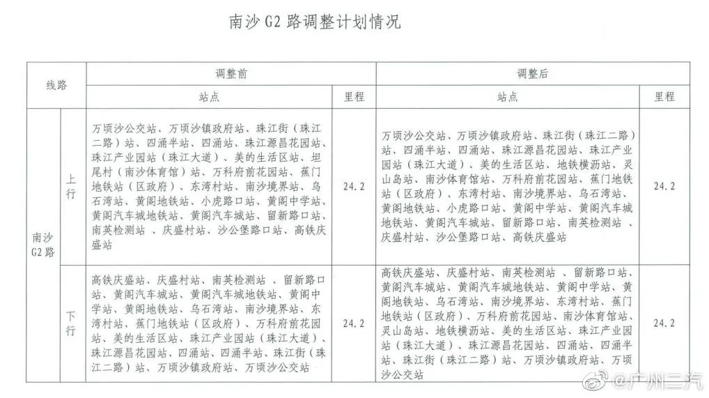 为做好地铁18号线南沙片区公交接驳工作,广州公交集团二汽南沙巴士公司将从9月26日起,对南沙2路、南沙5路、南沙25路、南沙31路、南沙G1路、南沙G2路、南沙G3路、南沙G4路等9条线路进行调整。