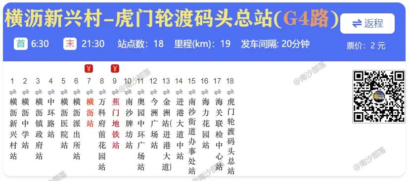 南G3路:横沥地铁站公交总站、灵山岛站、南沙体育馆站、高新沙路口站、灵山医院站、墩塘村站