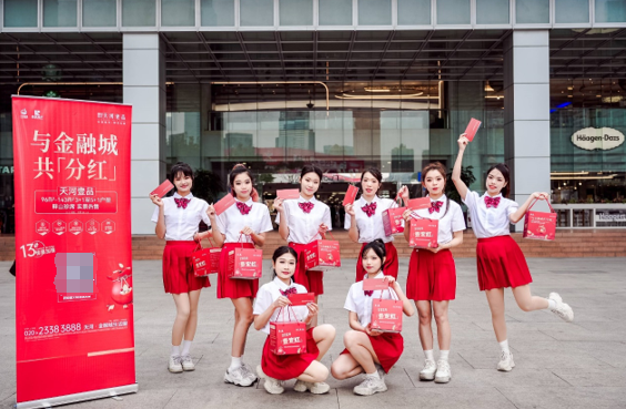 在活动当天在天河城、正佳广场、天环广场、美林天地、天环广场、都市华庭闪亮登场,热辣滚烫的”青春风暴“吸引着行人的眼光,市民们纷纷到活动摊位合影打卡,领取”壹定红“礼盒并咨询项目购房福利,现场活动十分火爆,瞬间刷爆整个朋友圈。