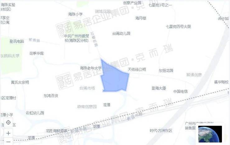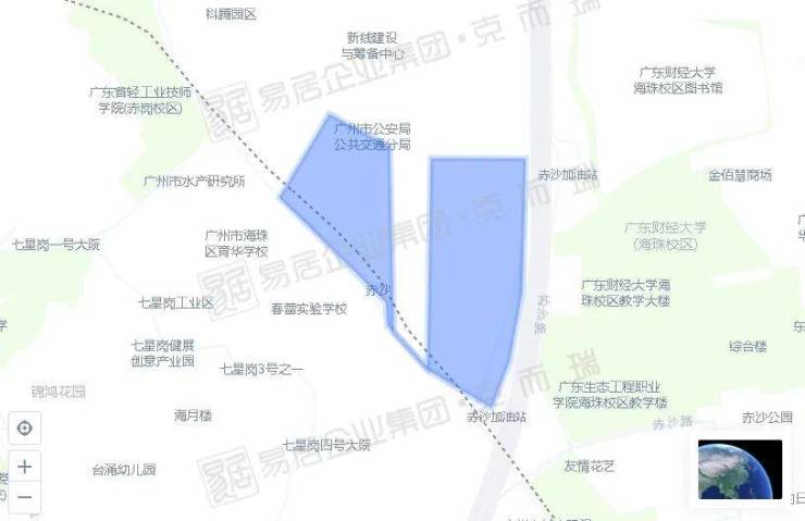 地块位于海珠东部,具体位置是在新滘中路北侧、石榴岗南侧、龙潭东环街东侧,靠近华南快速。另外,地块教育资源突出,周边坐落有赤岗东小学、赤沙小学、海珠中学、聚德中学等重点院校。
