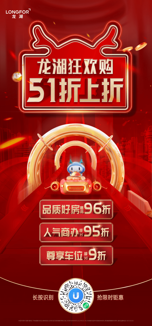 福利房源折上较高96折、部分车位9折起、部分商办95折起……5月1日,龙湖集团首届“五一狂欢购”火热开启,此次活动将持续15天,覆盖全国六十余个城市,共计300余个项目的在售房源、车位、商办类产品都将参与其中,累计让利约2亿元,以空前的优惠力度,助力城市居民的安家梦想。