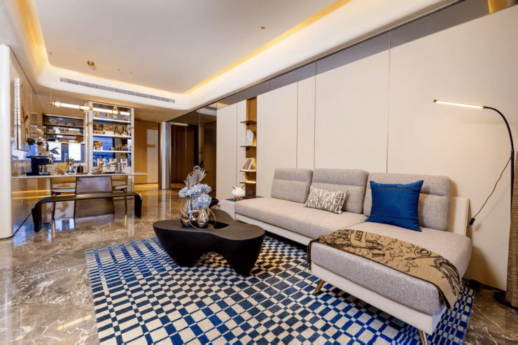 与此同时,新世界·天馥的顶配交标并非简单的品牌堆砌,而是融入了领先行业的生活智慧。项目采用全屋一擦即净护墙板、西班牙岩板质感地砖、超薄“内嵌式”金属踢脚线,不仅美观大方,更易于清洁和维护。智能系统通过一个APP即可轻松操控门禁、呼梯、空调、新风等功能,真正实现“每一位家庭成员都是家的主人”。