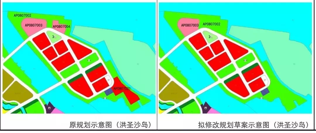 洪圣沙岛公园的绿地面积增加39156平方米,调整后为124640平方米。同时,将文化设施用地/娱乐康体设施用地面积减少为25057平方米,容积率为1.5,建筑密度40%,绿化率35%,建筑限高24米。