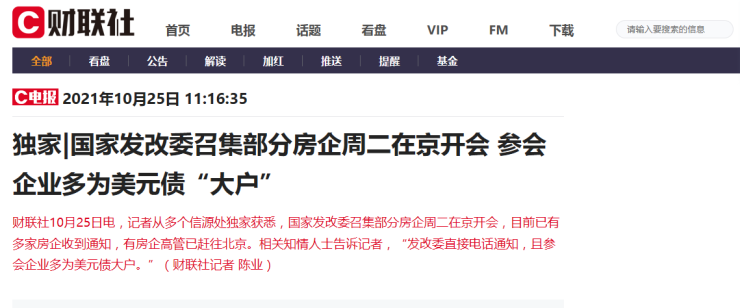 国家发改委召集部分房企周二在京开会 参会企业多为美元债“大户”