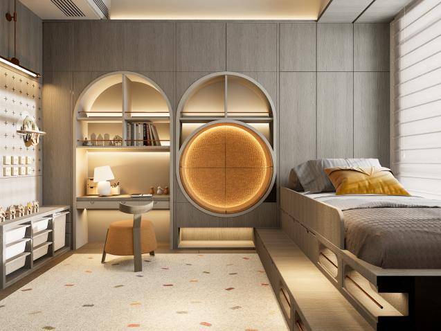 独立"学霸书房"——预留自然采光的长书桌,为孩子与父母提供平等共同学习的机会与交流的空间。