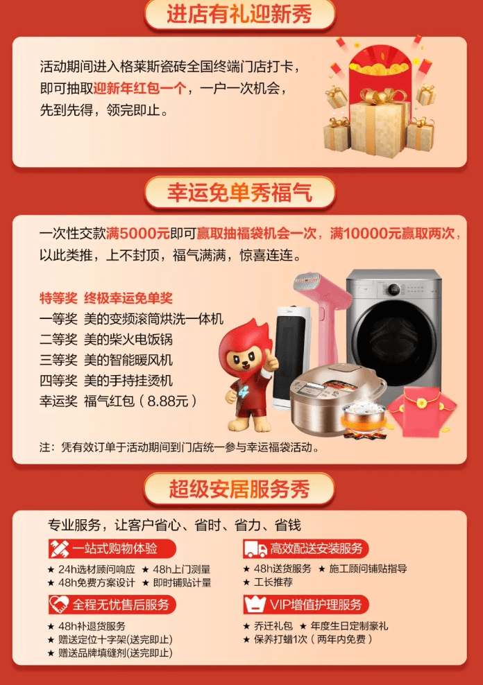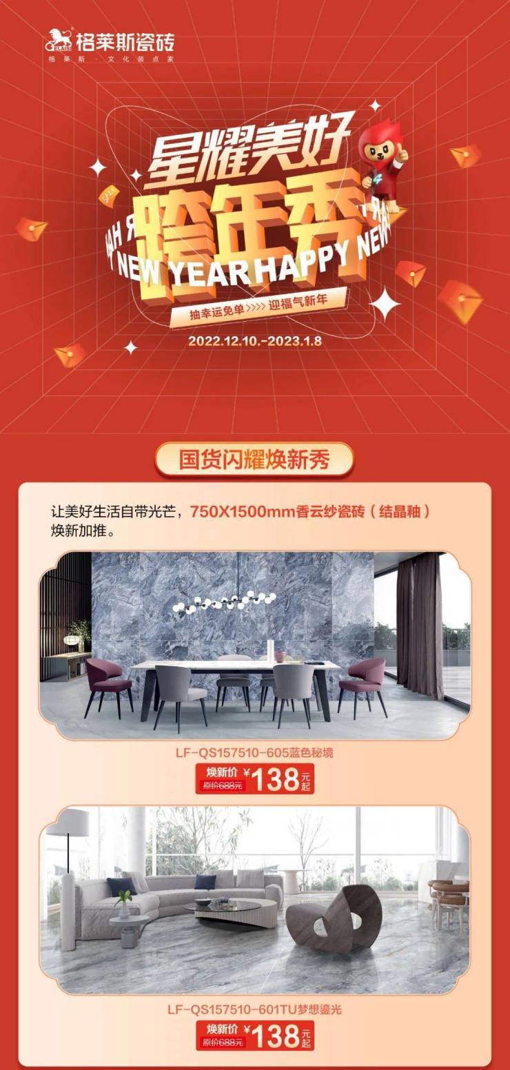 满足你的新年小愿望,跟格莱斯瓷砖一起跨年赢幸运免单吧!