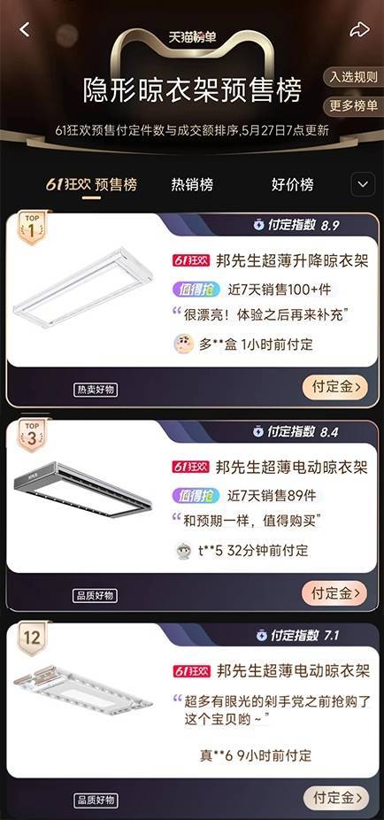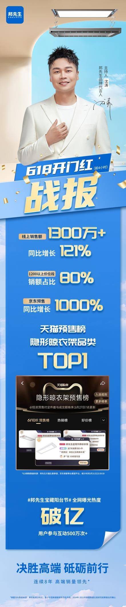 618首战大捷,邦先生销量同比增长121%,领跑高端隐形晾衣架新赛道!