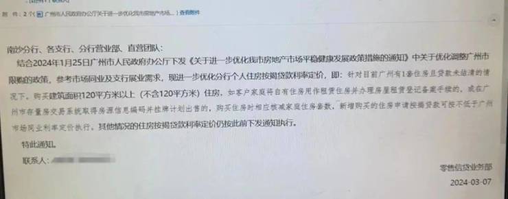 广州某股份制银行内部正式发文《关于进一步优化分行个人住房按揭贷款利率定价的通知》,正式确定:将有贷款未结清的房子放售/放租,再买建面超120平方米的住房可按首套房执行。