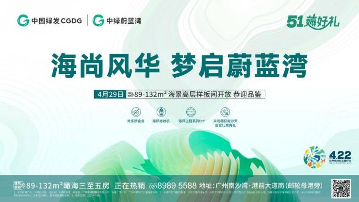 据悉,4月29日中绿蔚蓝湾海景高层样板间盛大开放,一场赏心悦目的品质之旅,一次引领湾区的人居共鉴,一次所见即是品质的震撼。与此同时,五一期间举办“海尚风华 梦启蔚蓝湾”首届梦幻海洋之旅,欢乐捕鱼达人、海洋娃娃机、海洋主题系列手作等活动,到访活动现场即可获得南沙天后宫门票2张,让您FUN肆嗨玩南沙湾!