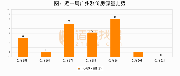 根据诸葛找房数据显示,广州24小时涨价房源量为0套,较01月20日减少1套,环比下降100%。与此同时,涨价房源占比小幅回落,对于购房者来说是一个入市窗口期,购房者可抓住时机入市。