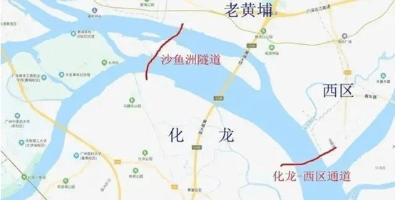 另外,黄埔至南沙高速公路工程化龙支线起于黄埔区开发大道与东江大道交叉口东侧,顺接东江大道,从东往西下穿黄埔新港、珠江之后沿金山大道往西布设,至南大干线汇入项目主线。