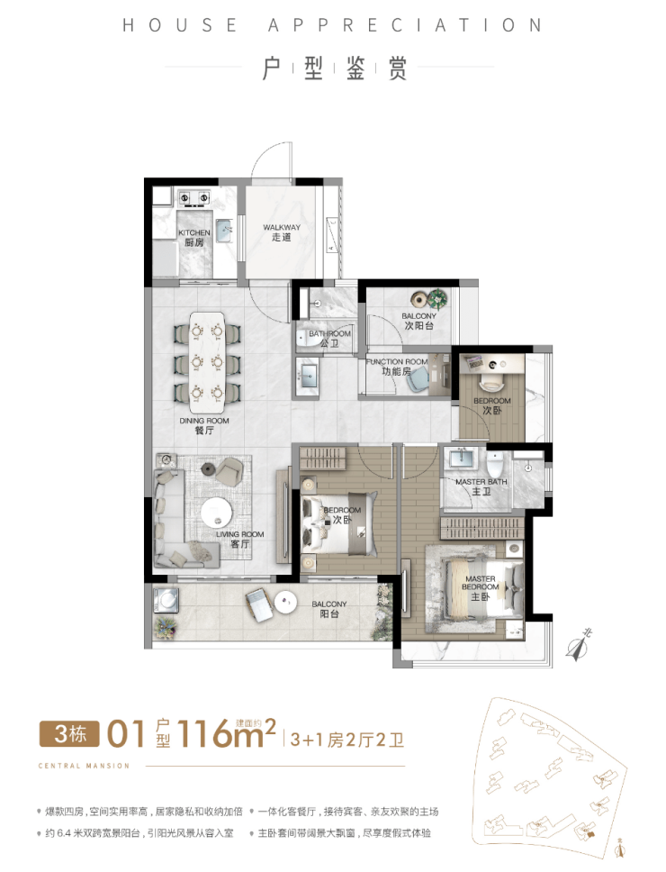 建面约116㎡4房2卫户型,进阶家庭优选。