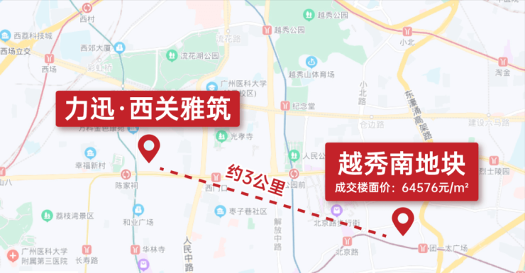 而转头一看,项目距离广州较高成交楼面价的越秀南地块,仅3公里。