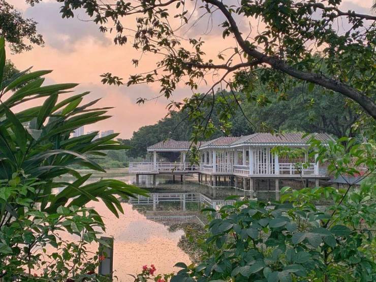 碧水绿树和蓝天白云交相辉映,亭台轩榭和假山叠水……岭南园林如水墨画般的美,被一一搬到了力迅·西关雅筑,每一帧画面都美到优质。
