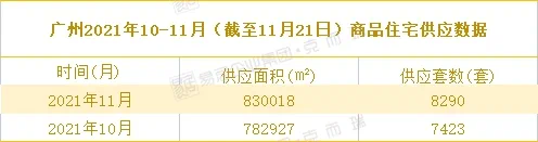 据克而瑞较新数据,11月以来,广州各大楼盘推货力度继续加大,截至11月21日,广州一手住宅供应套数达到8290套,超越银十全月新房供应量。