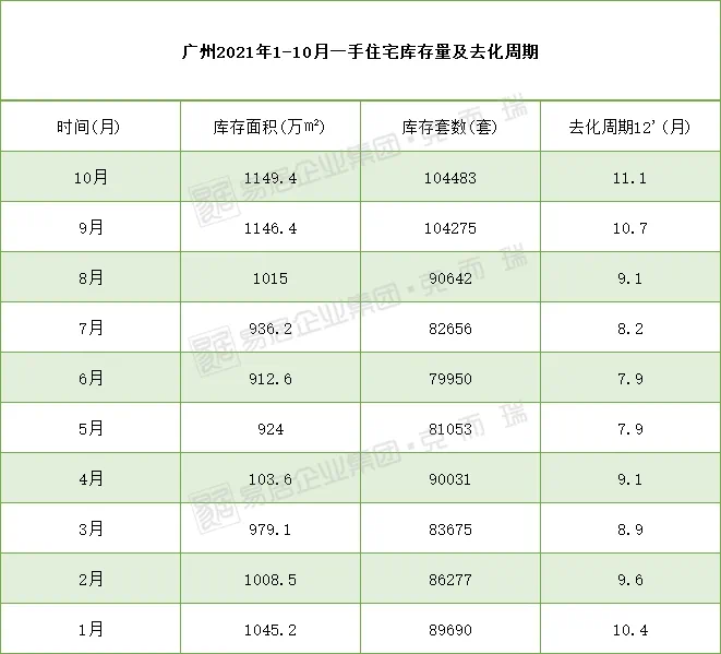 与此同时,从数据上看,广州商品住宅库存屡创新高,目前全市新房库存套数为104483套,库存面积1149.4万平,去化周期也拉长至11.1个月。