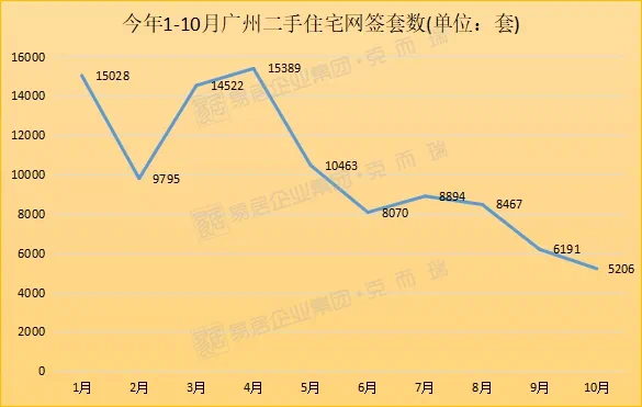 8月底被参考价重击的二手房市场,此后便成交量便“阶梯式”下跌,十月成交套数仅5206套,成交量不及去年同期(10684套)一半。