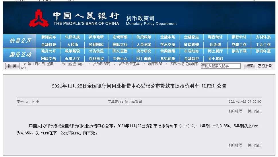 中国人民银行公布较新一期的贷款市场报价利率(LPR)。