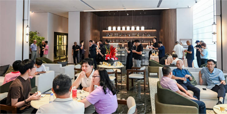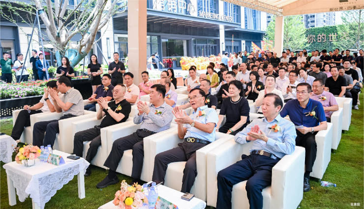 盛境初绽,高朋满座,热闹欢腾之景弥漫全场。精心设计的鲜花签到墙成为亮点,书写生活期许,让"与自然共生"的理念在此刻生根发芽。