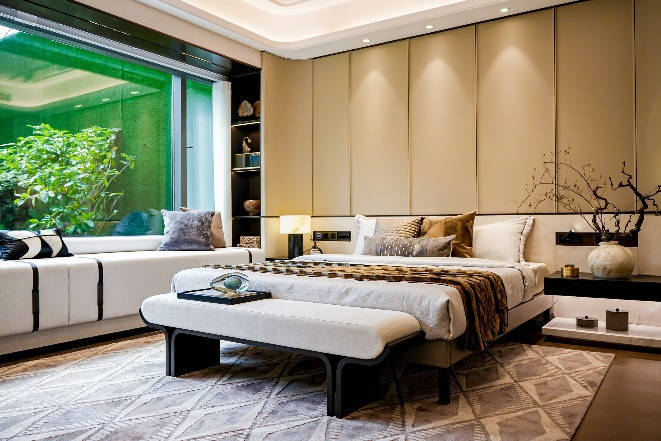 总统式主卧套房——建面约 37 ㎡奢阔空间,南向园景全面屏飘窗,带来极致生活体验。