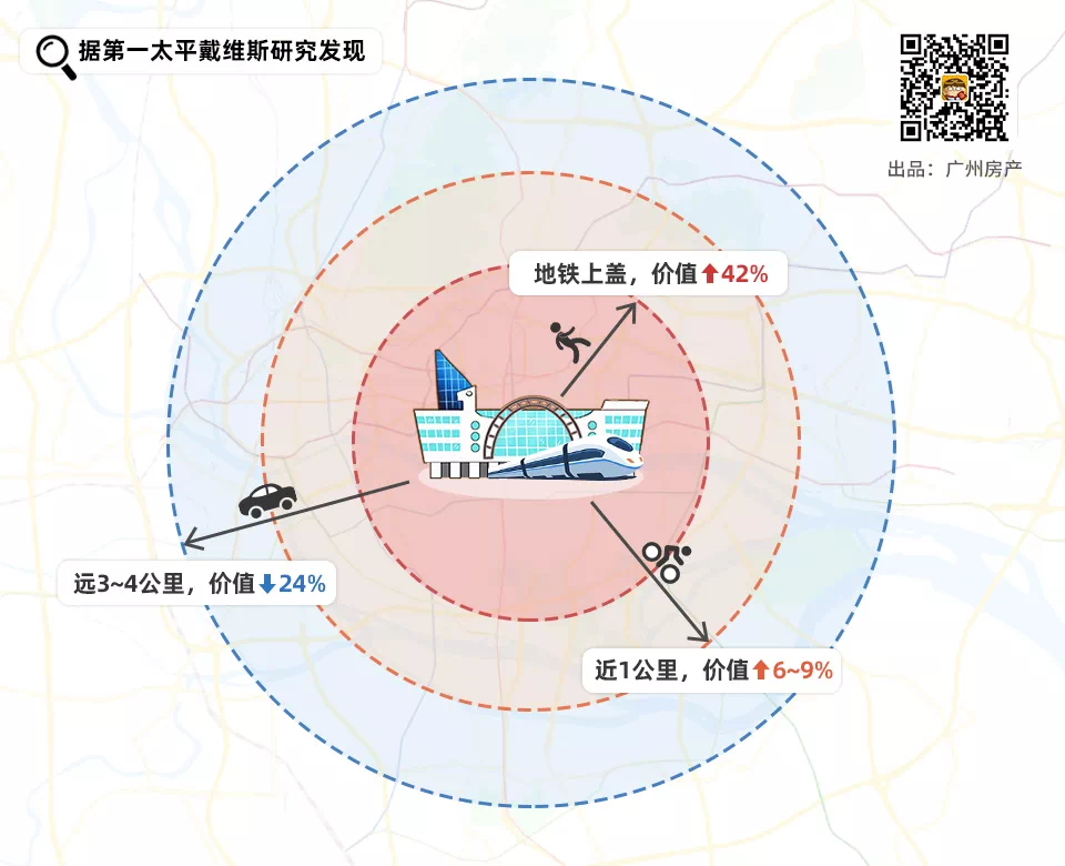 Savills报告显示,以地铁为中心的3公里范围内,向外每辐射1公里,物业价格下降6%-9%。