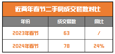 二手方面,但根据中原研究发展部的数据,2024年春节期间成交78套,同比去年上涨24%。其中番禺和海珠表现相对活跃,有较大幅度上涨。