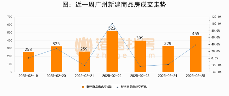 【广州成交日报】02月25日新房成交455套;涨价房源6套