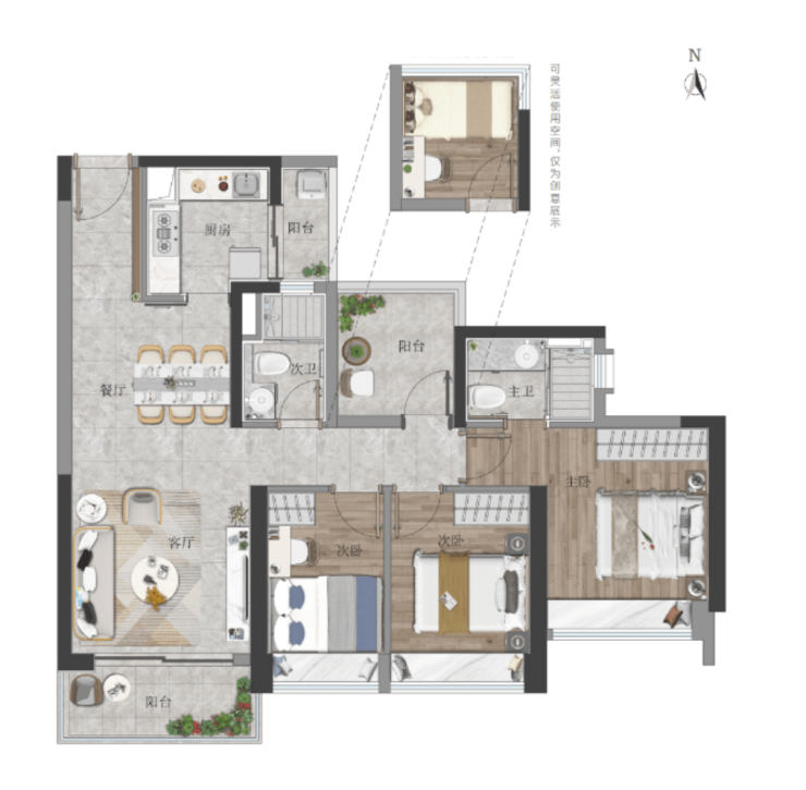 多一房的百变户型设计,不仅仅是空间尺度的优质延伸,更多的是随着家庭结构的变动、家庭成员的习惯变化,实现对美好生活场景的无限想象与呈现,优质承载各个家庭成员需求、最合理以及最有想象空间的生活场景需求。
