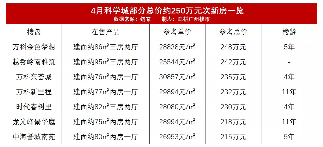 不过,从上面表格可见,预算250万以内的天河区二手房普遍面积小,居住环境会有一定的局限性。
