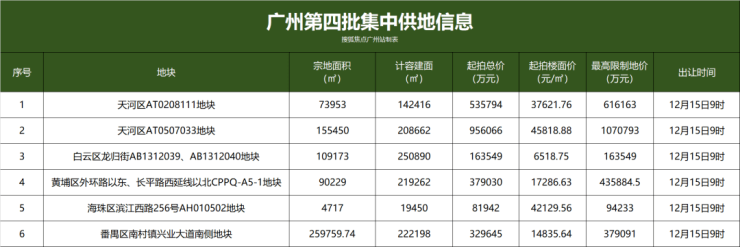 这一次,广州拿出了6宗涉宅地,是2022年四轮集中供地中供地宗数最少的一批次。