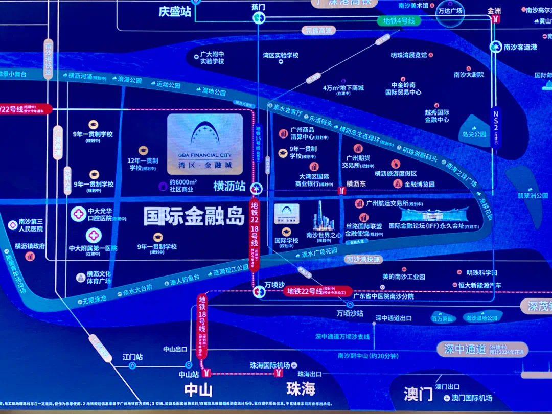 教育配套方面,横沥岛规划有12所教育配套,分别是:十二年一贯制学校1所、九年一贯制学校3所、小学1所、幼儿园7所,基本可以满足需求。按照目前发展规划,未来还会继续引进名校和实力师资。商业配套方面,横沥岛也有超74亿大手笔建设70000㎡的地下空间,地下空间对标位置恰恰是整个片区金融发展首要核心区域。——NO 2 ——说完片区利好,我们仍旧回归和聚焦于楼市情况。去年南沙房价突飞猛涨尚在眼前,源源不断刷新着南沙楼市的热度与速度。横沥岛成熟度虽不如一江之隔的灵山岛。但论发展空间与配套资源,加之此前高价地项目入市的推动,许多人称其为南沙未来的“杀手锏板块”。目前该板块已出让4宗涉宅地块,对应项目分别是:葛洲坝·湾区金融城、旭辉曜玥湾、深业置地横沥岛项目以及美的绿城·江上沄启。其中有3宗预计今年入市,想必各位看官们都早有耳闻。