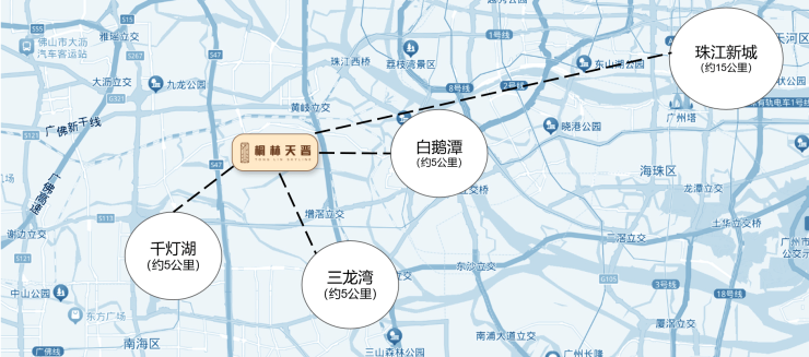 由两区政府共同打造的广佛湾,占地面积约23平方公里,是白鹅潭、千灯湖和三龙湾千亿级板块交汇点,未来将成为承接粤港澳大湾区人口资源、产业转移、资源红利的枢纽要地,全力打造为广佛全域同城化的标杆区域,开启广佛同城3.0时代。