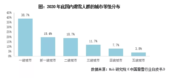 排名前列,作为小众且高危的运动,冰雪对客群的经济消费水平要求高,目标客群有限。滑雪装备价格不菲,包括雪靴、雪服、雪板、雪镜、头盔等产品,入门级装备接近6000元,入门期教练费用也十分高昂,全天5小时费用至少1500-2000元。此外,滑雪场对环境要求高,多选址在黑龙江、吉林、辽宁和新疆等偏远山区,对南方客群而言交通费、住宿费也成为滑雪支出的大头。Mob研究院数据显示滑雪人群的城市等级呈现阶梯式分布,2020年一线、新一线和二线占比分别38.7%、19.4%和18.7%,滑雪人群年龄集中在25-34岁(占比45.7%),收入集中在10K以上(占比43.3%)。以上画像人群规模相对有限,另外其中至少过半人群属于一次性体验消费,在北京冬奥会热度消退后冰雪项目对客群是否具备强粘性也未知,一定程度上给房企布局冰雪地产以及门票提价带来不确定性和难度。