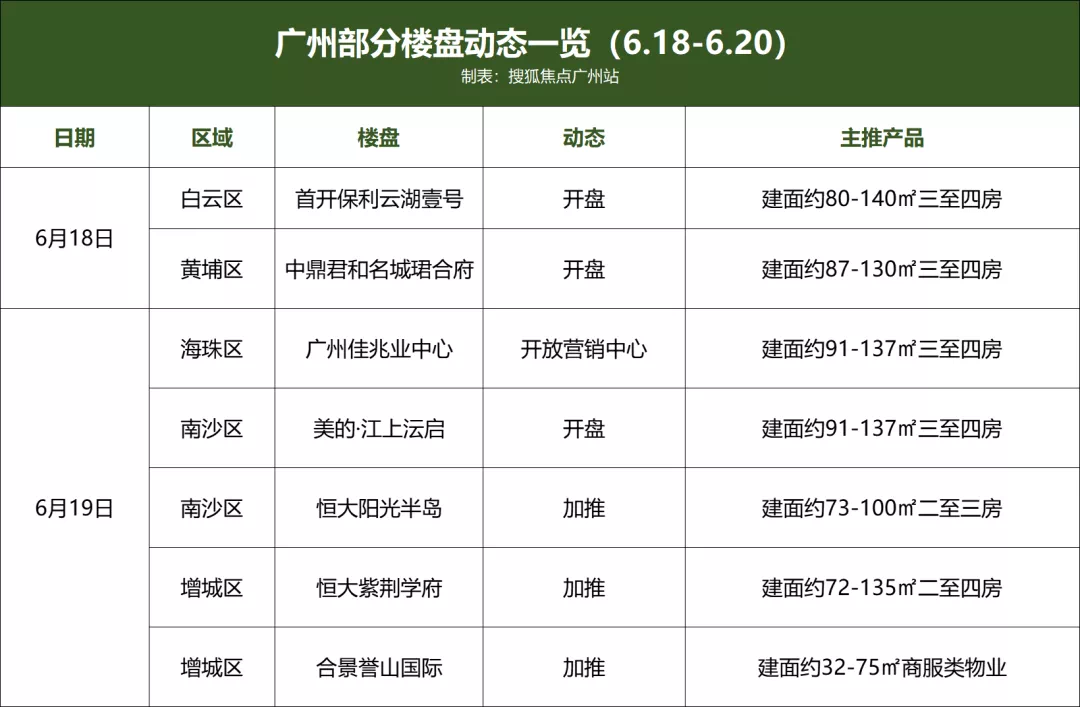 除常规营销外,不少楼盘亦有突破性动作。据搜狐焦点广州站不完全统计,本周(6.18-6.20),约7盘将推出新货,涵盖3盘开盘、1盘开放营销中心、3盘加推新品。