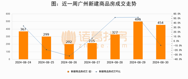 【广州成交日报】08月30日新房成交454套;涨价房源49套