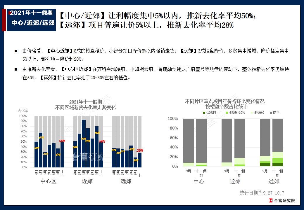 合富辉煌统计显示,国庆期间全市楼盘推新去化率为40%-50%,有近六成的项目,其去化率在30%以下。