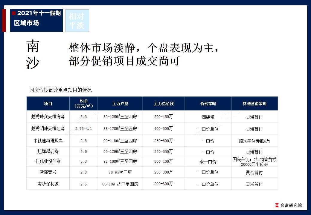 但在增城、从化等远郊板块,因库存压力大,据统计约有30%的楼盘价格环比下调。国庆期间,增城多盘降价推新和推出“一口价优惠”,个别项目让利幅度超过25%。相对来说,南沙板块的价格环比则相对稳定,零星个盘有小幅让利。