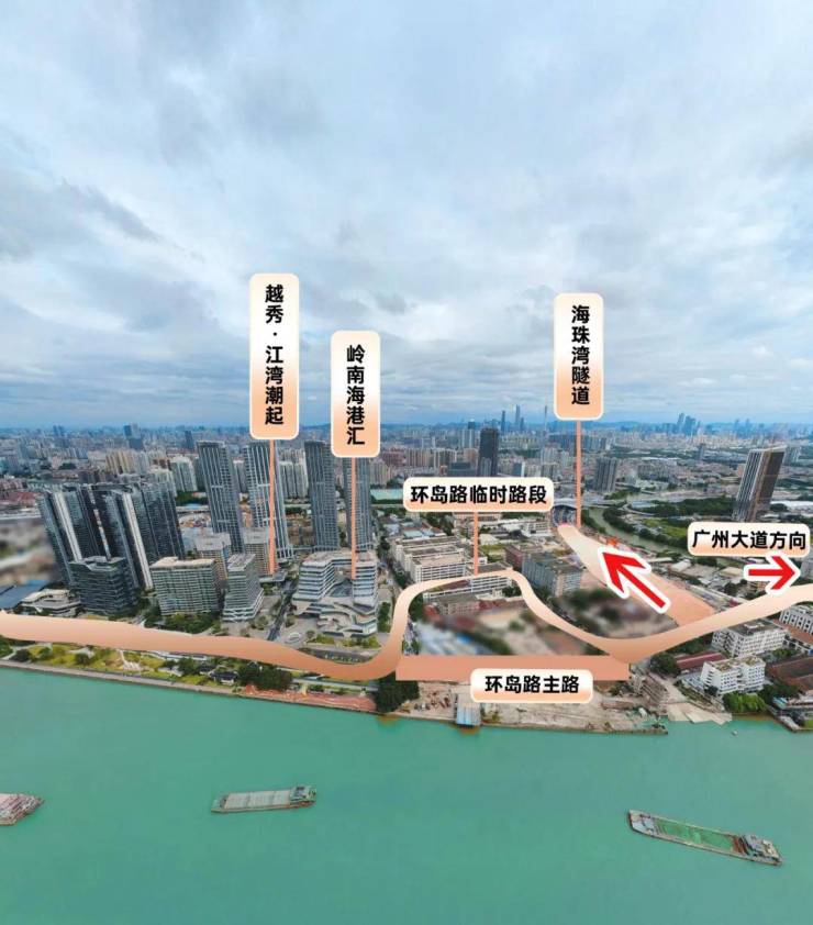其一,环岛路临时路段即将通车。此前,海珠环岛路(石岗路-大干围段)因最后百余米未贯通,形成“百米变公里”的交通困局。随着临时路段的开通,环岛路即将实现初步闭环。