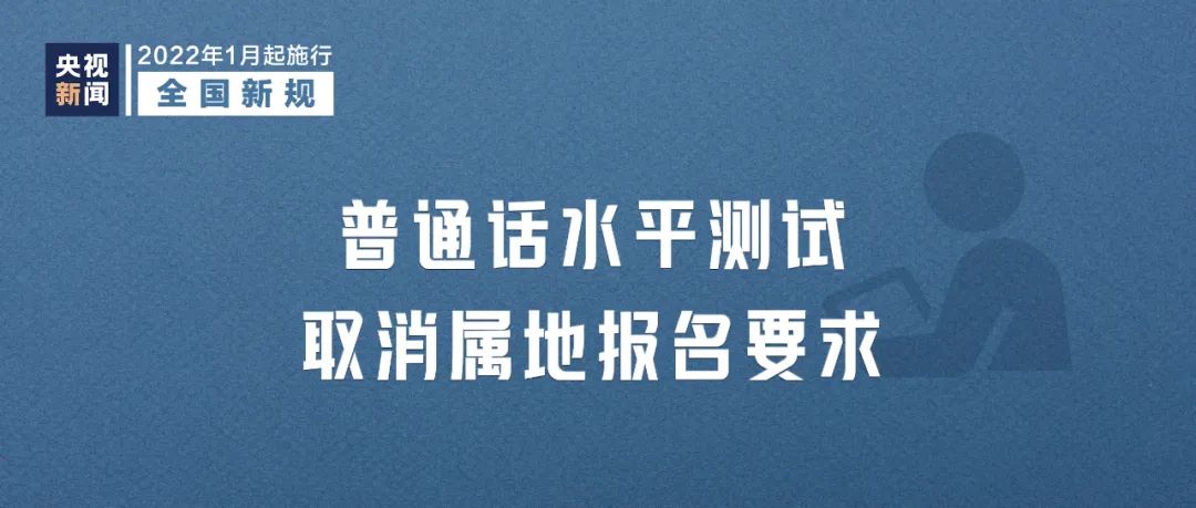 《普通话水平测试管理规定》2022年1月1日起施行。删除两次测试间隔时间的要求,取消属地报名要求,明确应试人可根据实际需要,就近、就便报名参加测试。一级甲等须经国家测试机构认定,一级乙等及以下由省级测试机构认定。