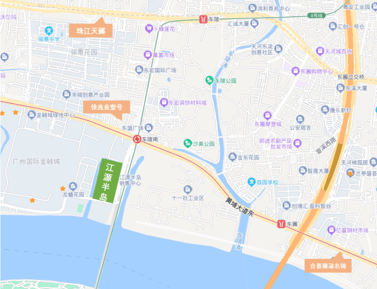 位于车陂路与沿江大道的交界处,江源半岛距离珠江新城CBD只有15分钟车程;连接金融城和琶洲的车陂南隧道就在旁边,去琶洲也只是一脚油门的事。距离4/5号线交汇的车陂南地铁站约500米距离,5站直达珠江新城,交通非常便利。