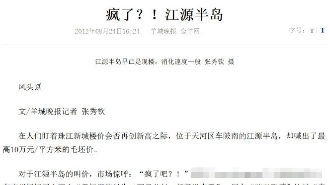 2011年金融城一纸规划从天而降,2012年江源半岛最高叫价10万/平!成为广州第一个喊出10万+的楼盘!