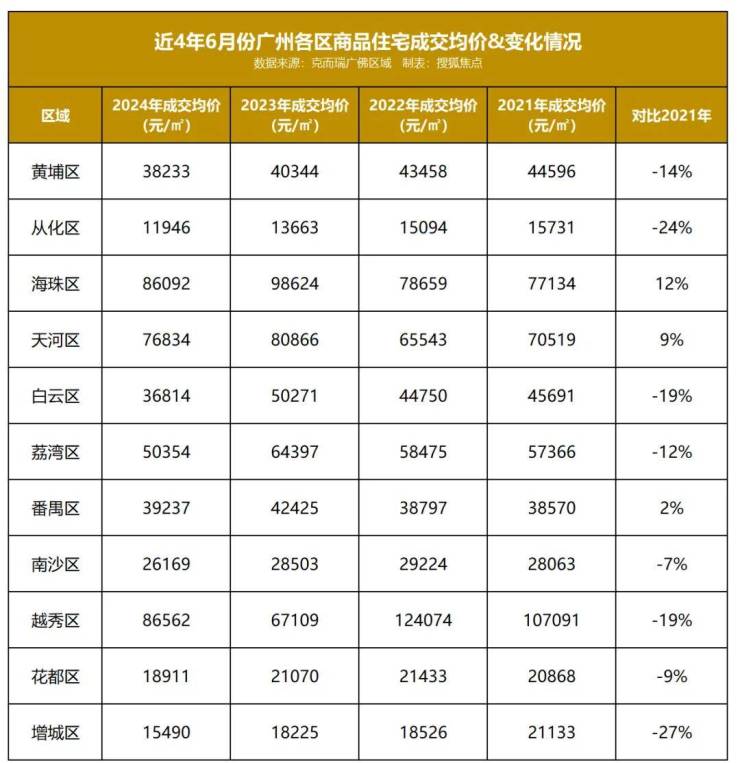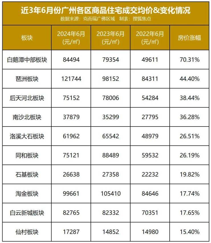搜狐房产整理了近三年(2021年6月-2024年6月)的广州70+个板块的数据,看点还是不少。