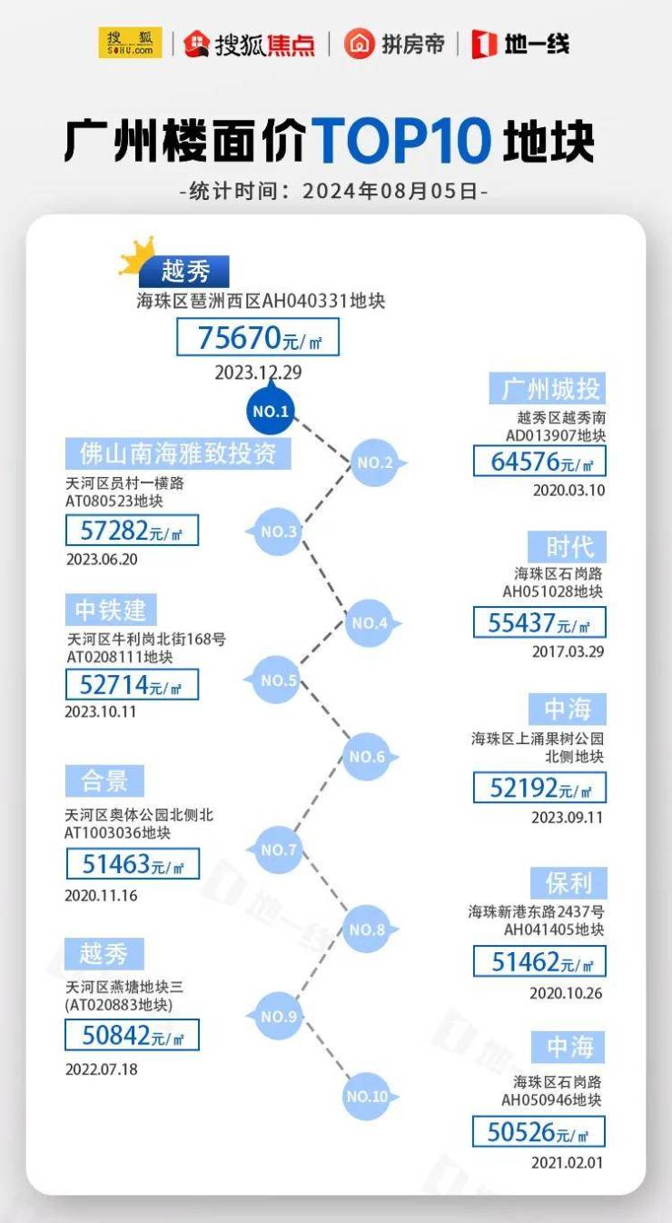 不过,海珠房价早已全面反超天河。这主要还是因为这几年,海珠区掏出不少沿江宅地、CBD贵地。目前,广州涉宅地成交楼面价top10排行榜中,海珠区的地块占一半。