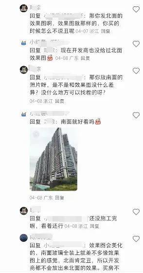 因此,在中海大境的外立面事件上,市场上也出现了不同的声音。一部分人认为开发商对外展示的效果图为南向视觉,而业主拿北面的实际呈现做对比,难免会产生视觉上的落差。