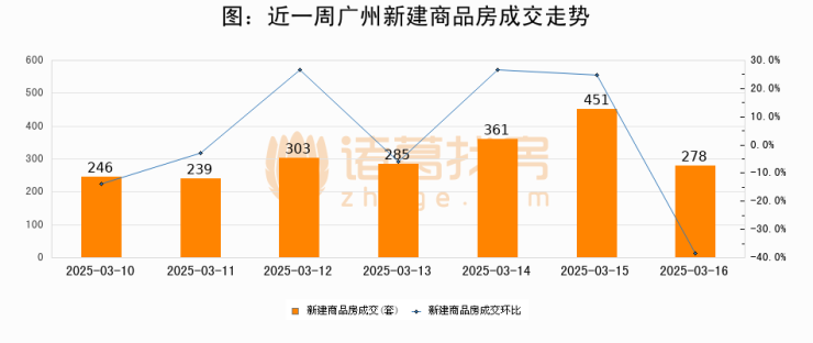 【广州成交日报】03月16日新房成交278套;涨价房源2套