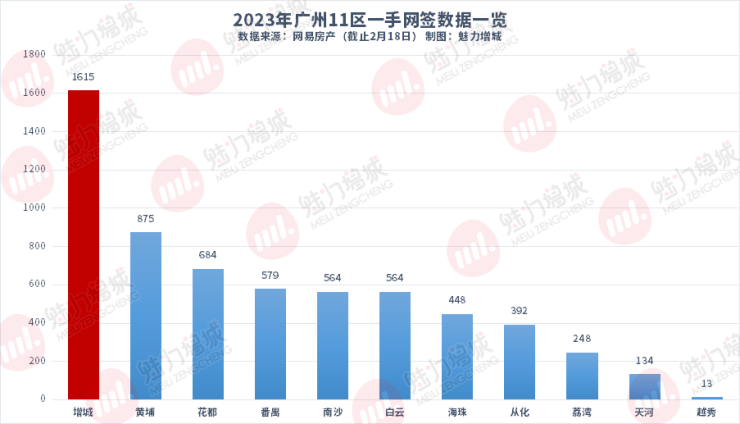 截止2月18日,增城的一手网签成交数据,依然是以1615套的优势领跑全区。