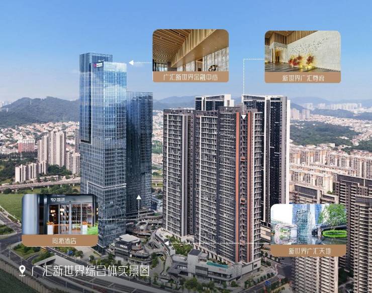 3、 品质:香港客户会更倾向于能够提供多元化生活场景和国际化生活标准的高品质楼盘。广汇新世界金融中心|广汇尊府作为新世界中国在广州东部中心打造的首个综合体地标项目,以“CO-CITY都会融合体”核心生活理念,融汇新世界生态圈四大品质业态。