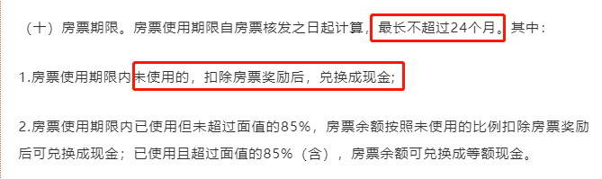 房票的使用期限不超过24个月,到期未使用或有余额,可兑换成现金。